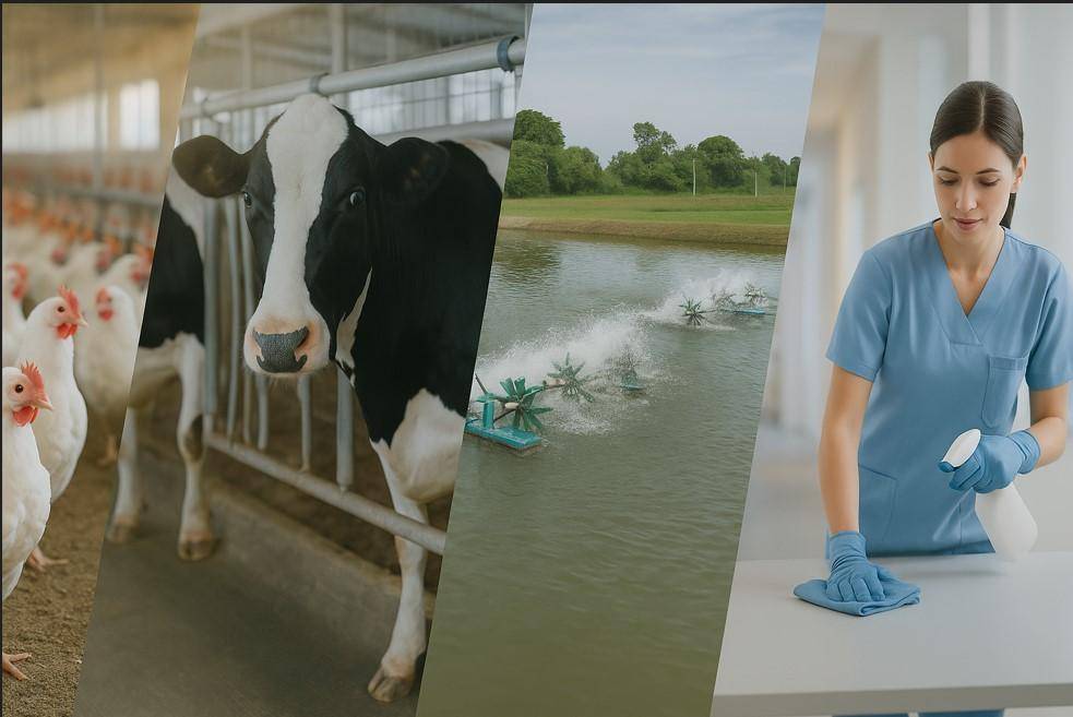 End-to-end hygiene and disinfection solutions for Poultry, Dairy, Aquaculture, Healthcare, and Industrial applications — trusted by professionals, backed by science.