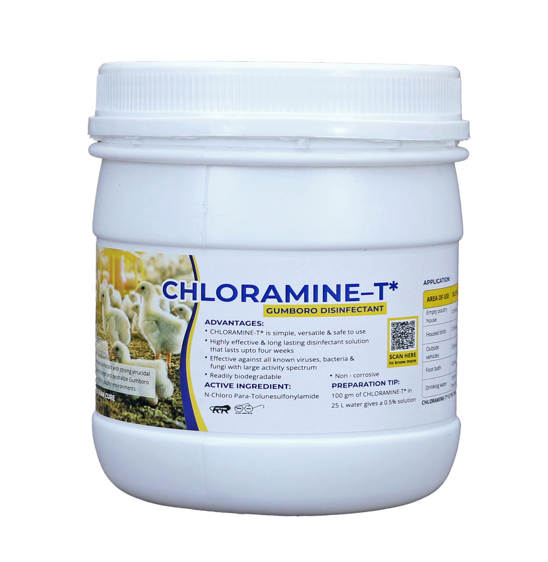 - It is recommended to use Chloramine-T as a spray and in drinking water at the start of fourth, fifth and sixth week in layers as well as broilers to minimize the chances of viral outbreaks.